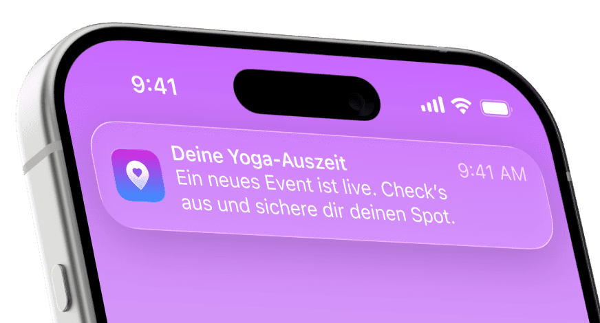 Schicke gezielte Push-Benachrichtigungen, zum Beispiel bei freien Kursplätzen, kurzfristigen Angeboten oder Aktionen, die heute noch Aufmerksamkeit brauchen.